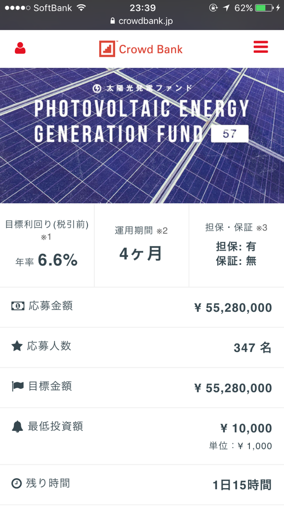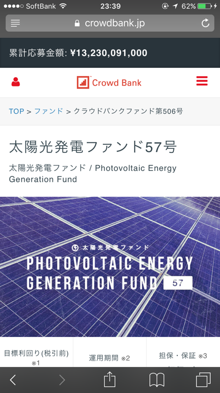 【Crowd Bank】2017/04/24 太陽光発電ファンド57号 投資200,000円